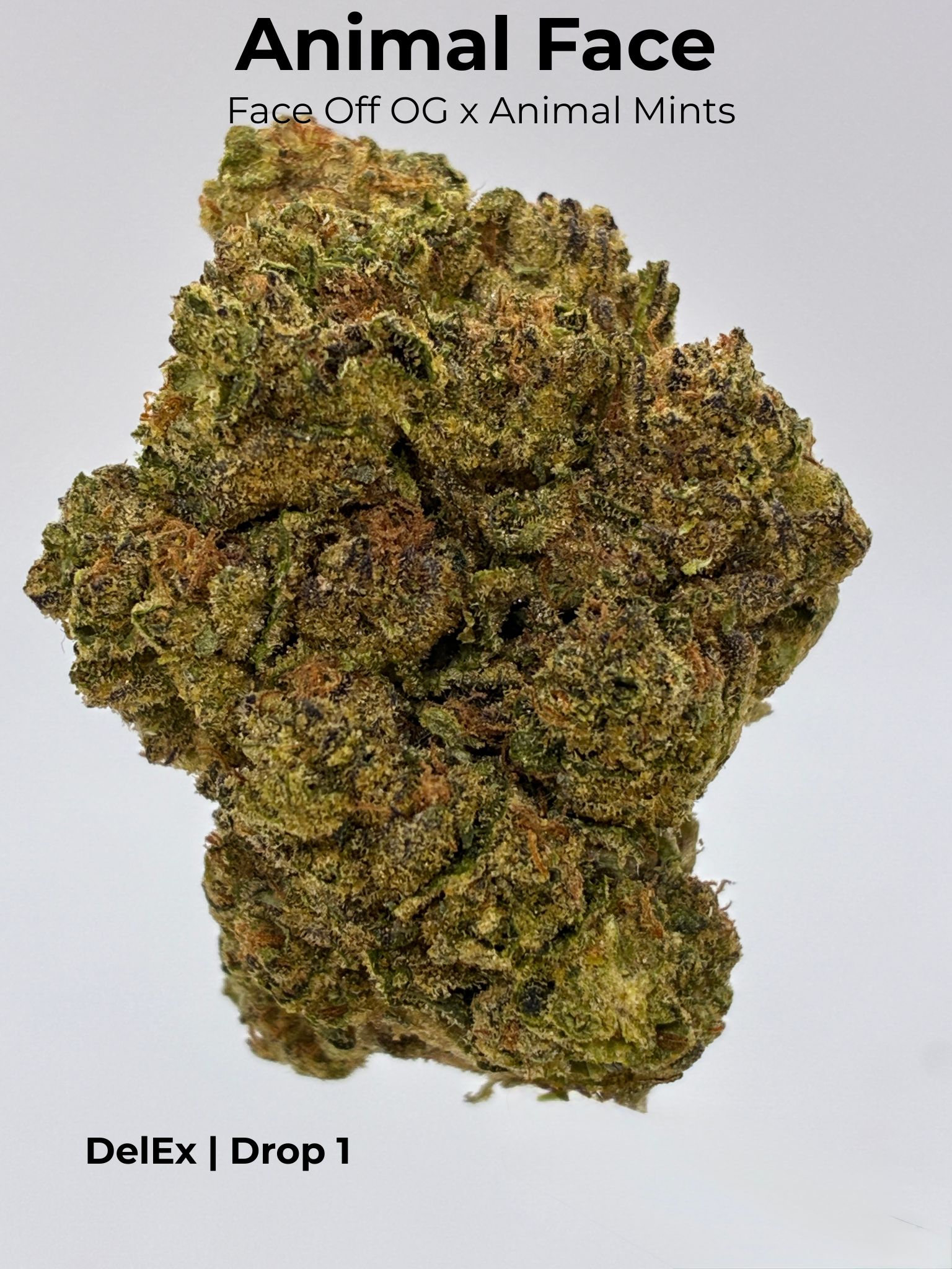 Animal Face is a potent and flavorful hybrid with a gassy, nutty aroma layered with sweet earthiness. Organically greenhouse-grown, combining natural sunlight with precision-controlled lighting for optimal potency and terpene expression, this cultivar delivers an intense cerebral rush followed by a smooth body relaxation. A top choice for those seeking bold flavor and strong effects.