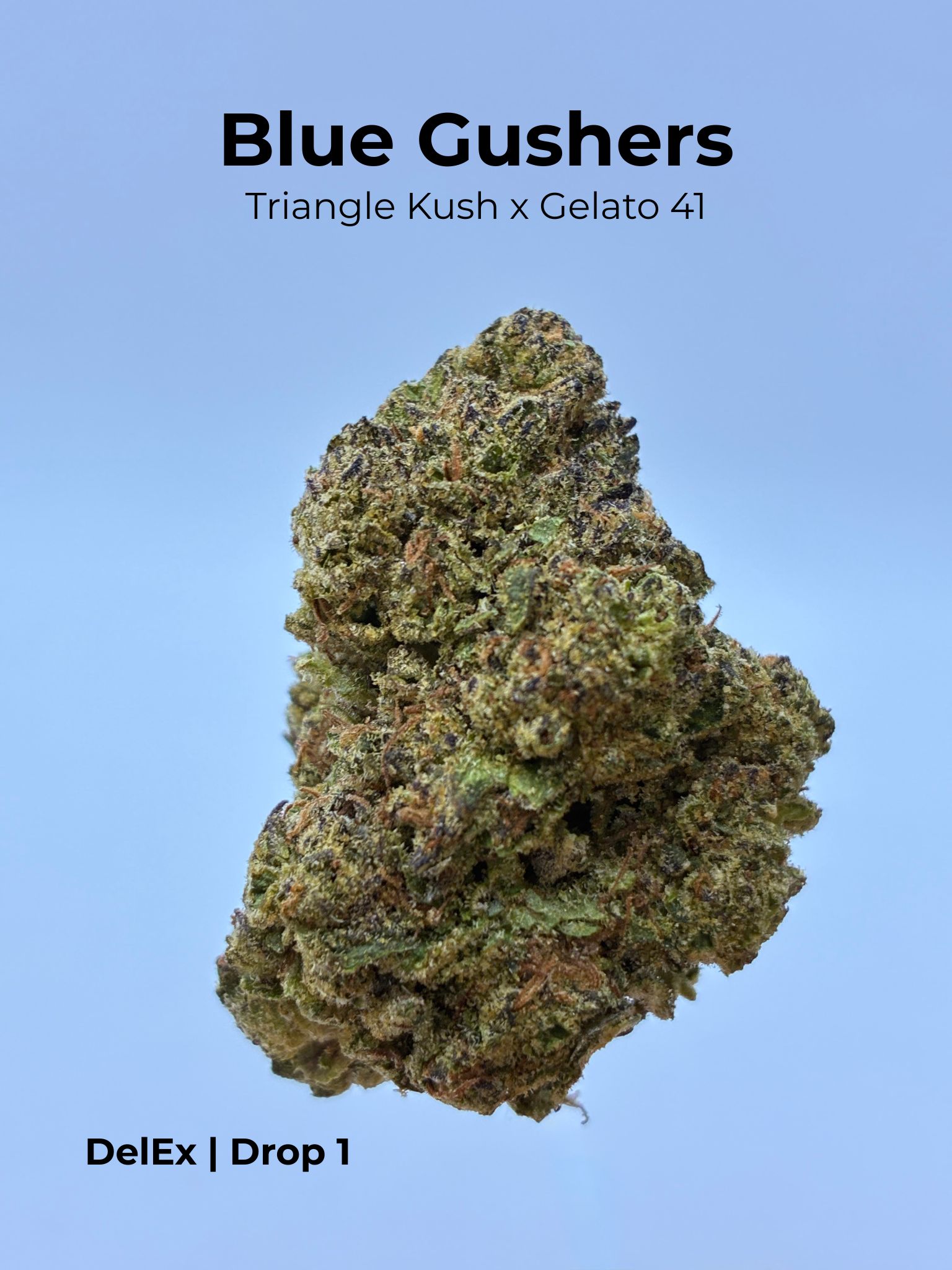 Blue Gushers is a fruit-forward hybrid with rich berry and candy-like notes. Organically greenhouse-grown, combining natural sunlight with precision-controlled lighting for optimal potency and terpene expression, this strain provides a balanced, euphoric high with deep relaxation.